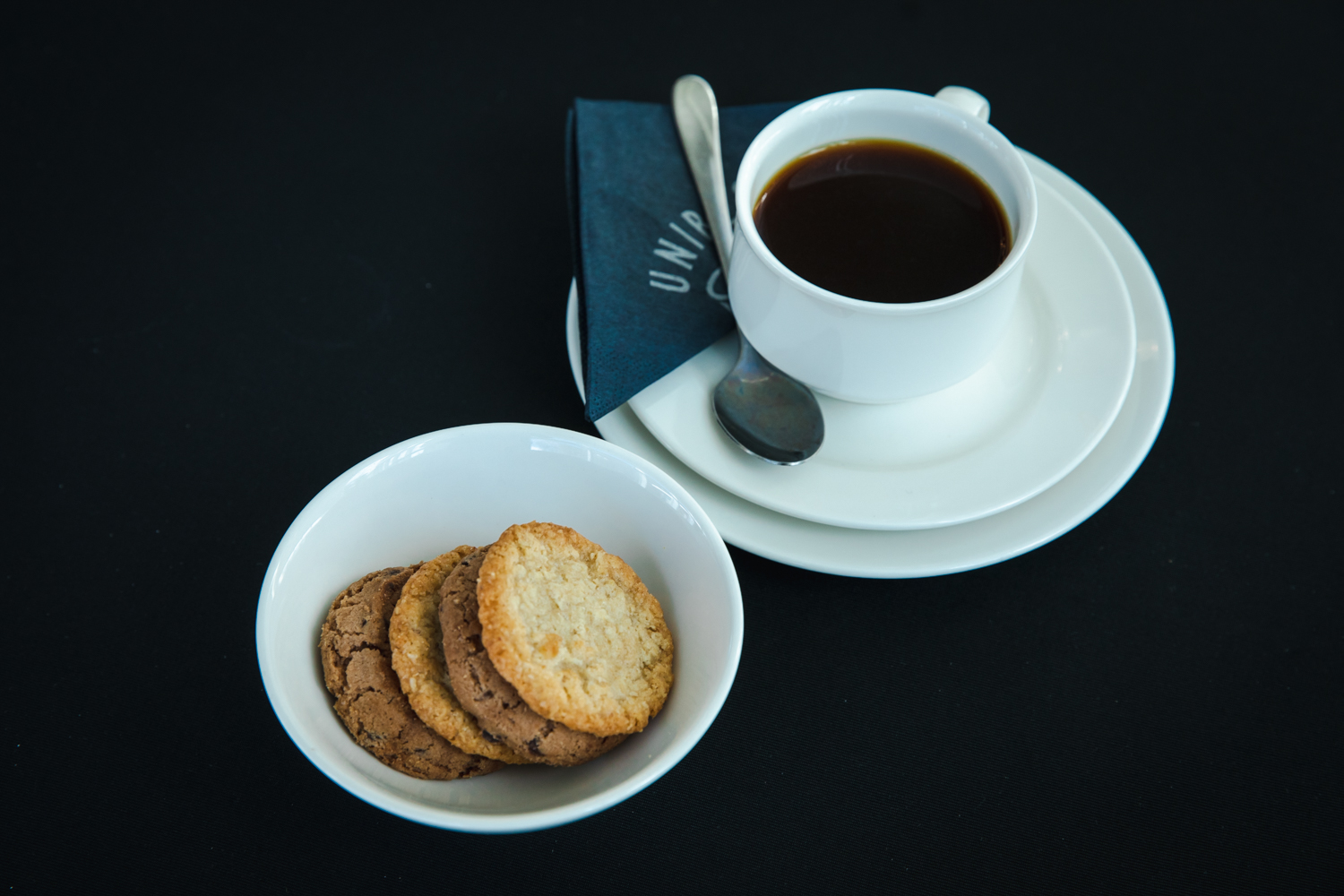 Kahvia ja haudutettua teetä sekä keksejä (2 kpl/hlö)