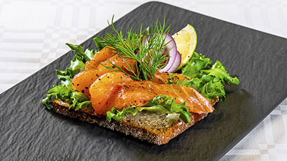 Sisältää ruisleipää, lohta ja lisäkkeet.